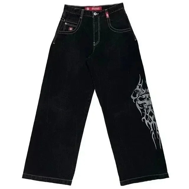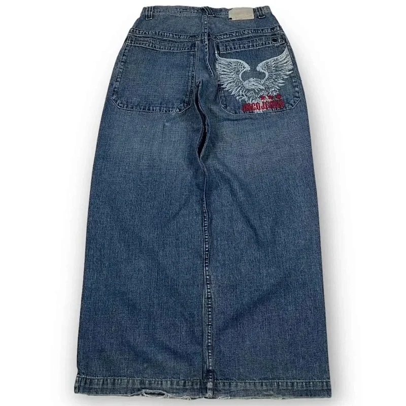 Big boy fashion hip-hop cartoon embroidery retro multiple loose jeans-2478