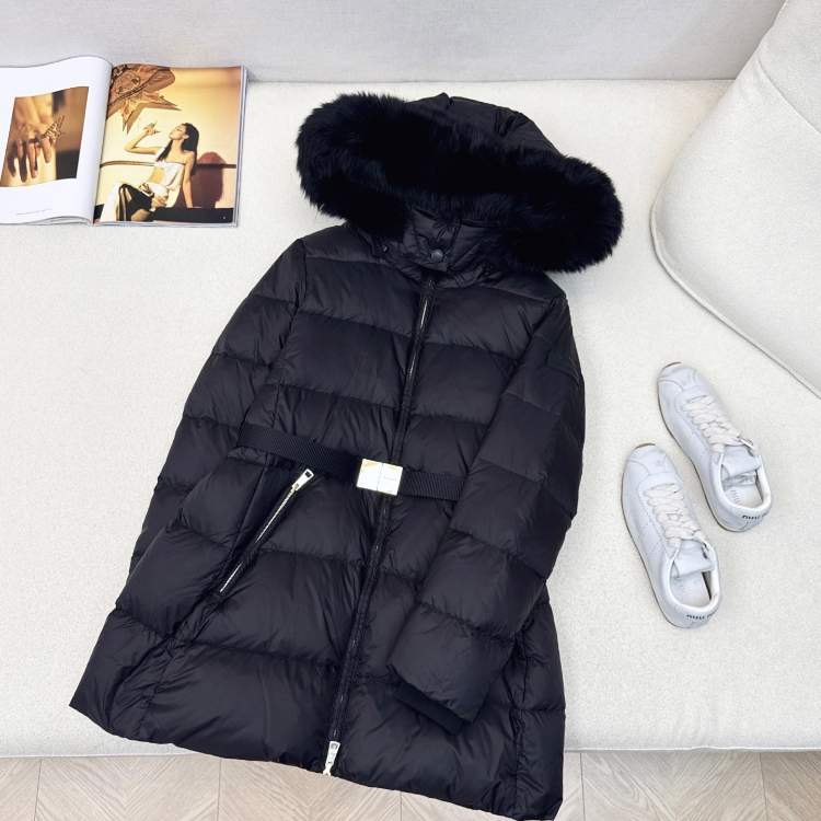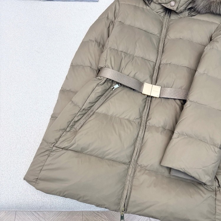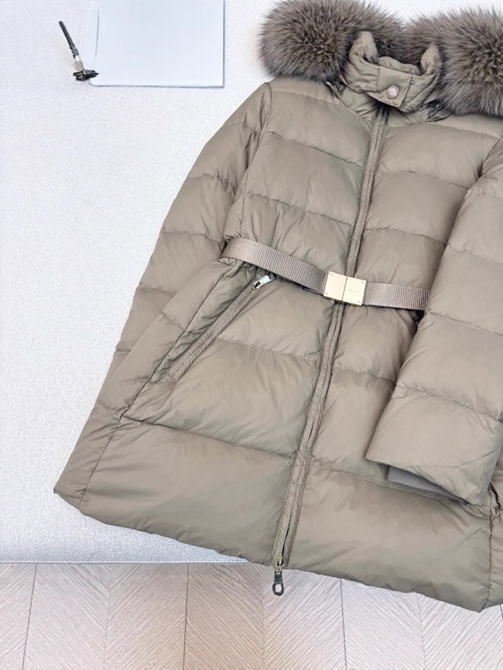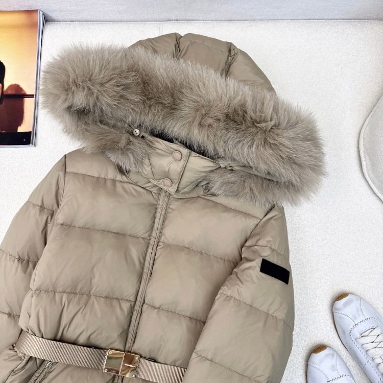 Burberry fitted, slimming, mid-length down jacket with fur collar and 90% white goose down filling-5338