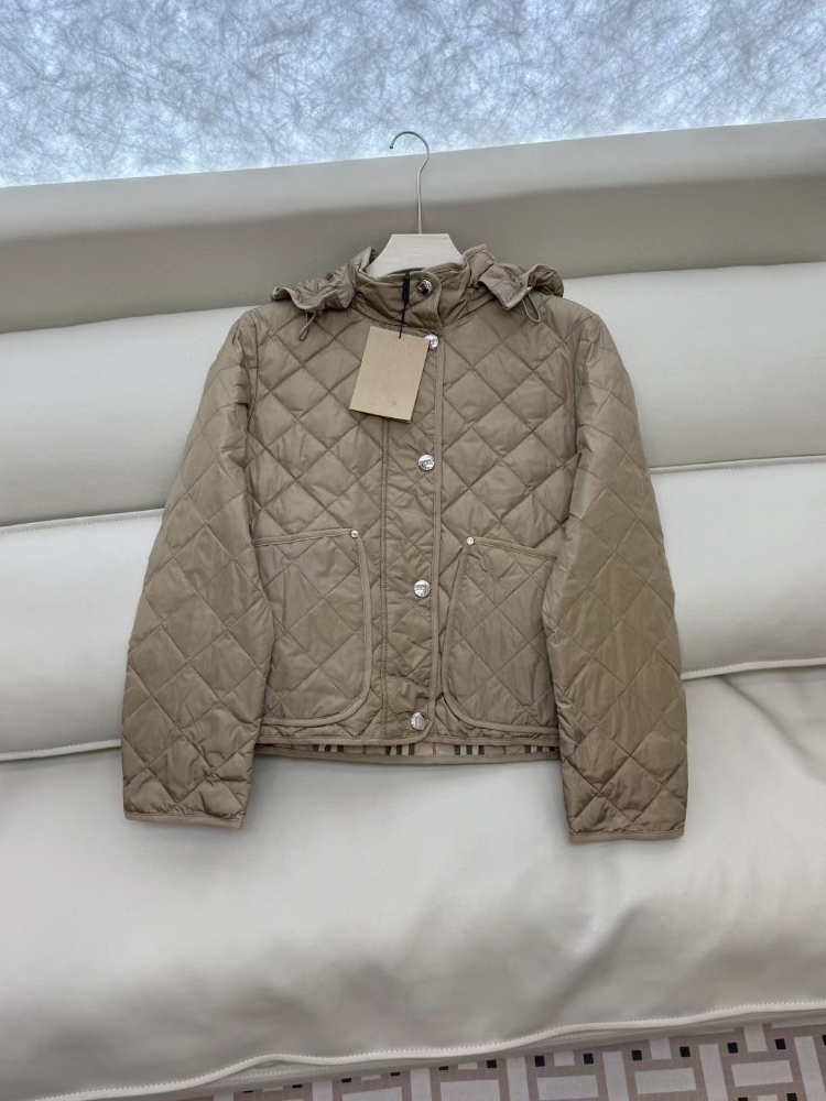 Burberry new casual quilted hooded plaid warm down jacket-5356