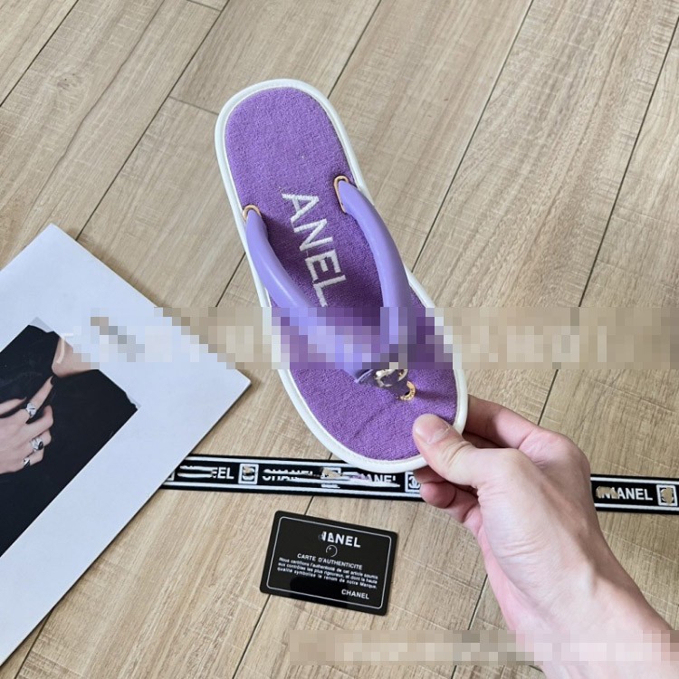Chanel new terry cloth flat sandals with metal buckle-5710