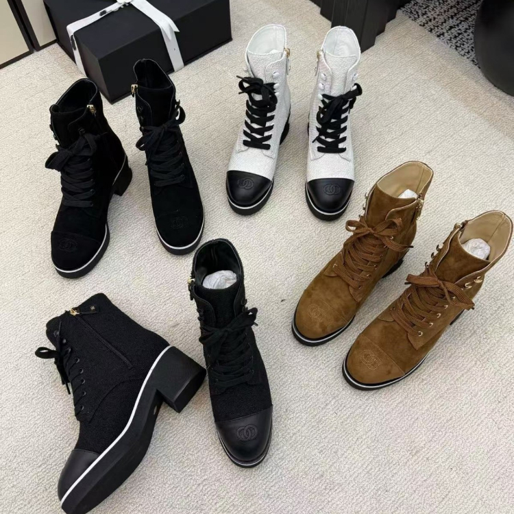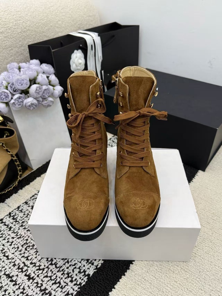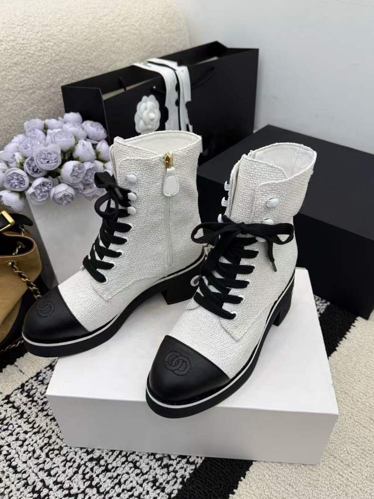 Home > Chanel platform color-block lace-up ankle boots-5774