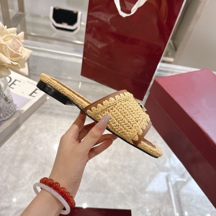 Gucci new handmade woven slippers with metal buckle-5756