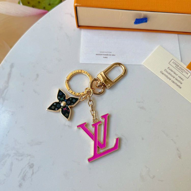 Home > Louis Vuitton LV black tricolor old flower pink letter keychain-3761