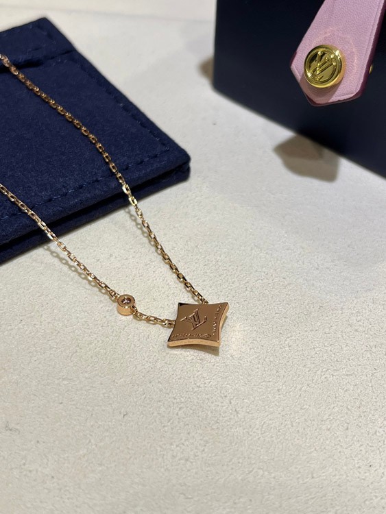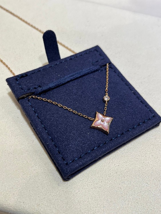 Louis Vuitton LV Pink Mother-of-Pearl Floral Diamond Rose Gold Necklace-3726