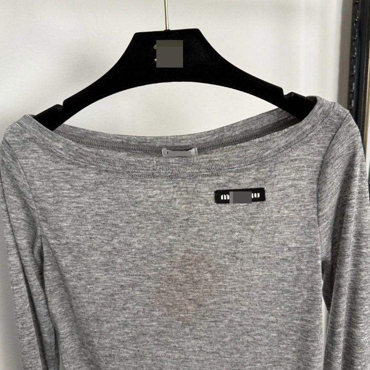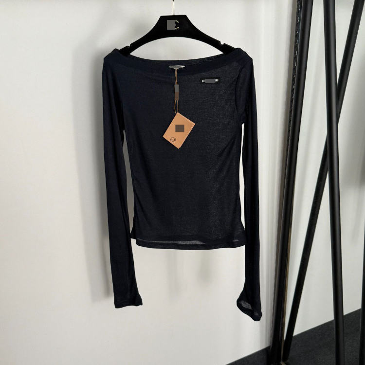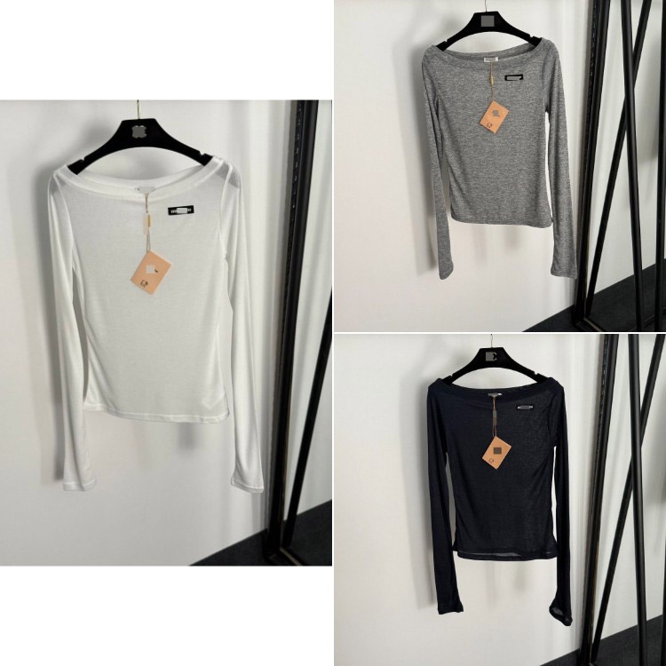 Miu Miu off-the-shoulder thin long-sleeved T-shirt-5413