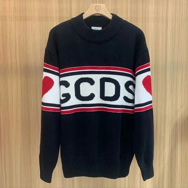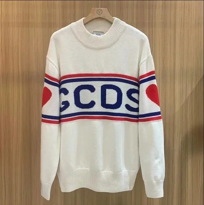 Home > Sudadera GCDS Unisex classic white and red stitching round neck T-shirt sweater knitted sweater-2542
