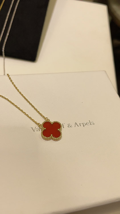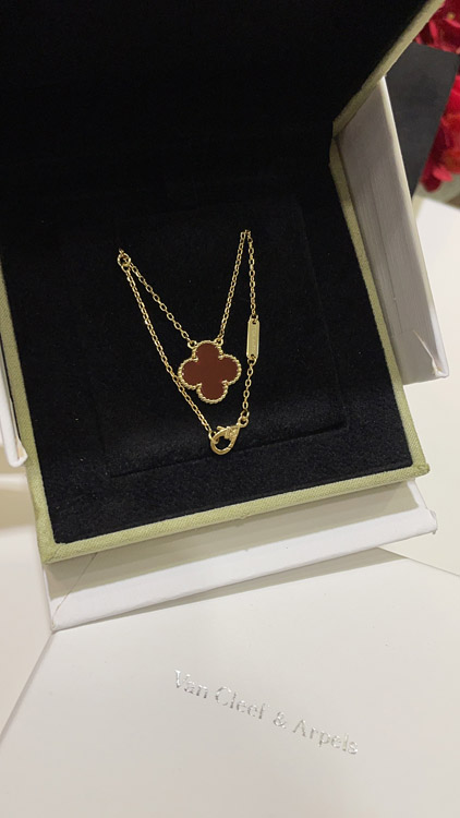 Van Cleef & Arpels Carnelian Four-Leaf Clover Gold Necklace-3888