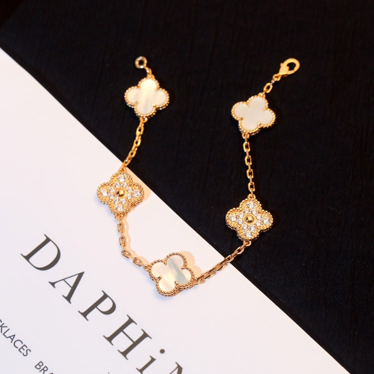 Home > Van Cleef & Arpels classic five-flower diamond white mother-of-pearl bracelet-3781
