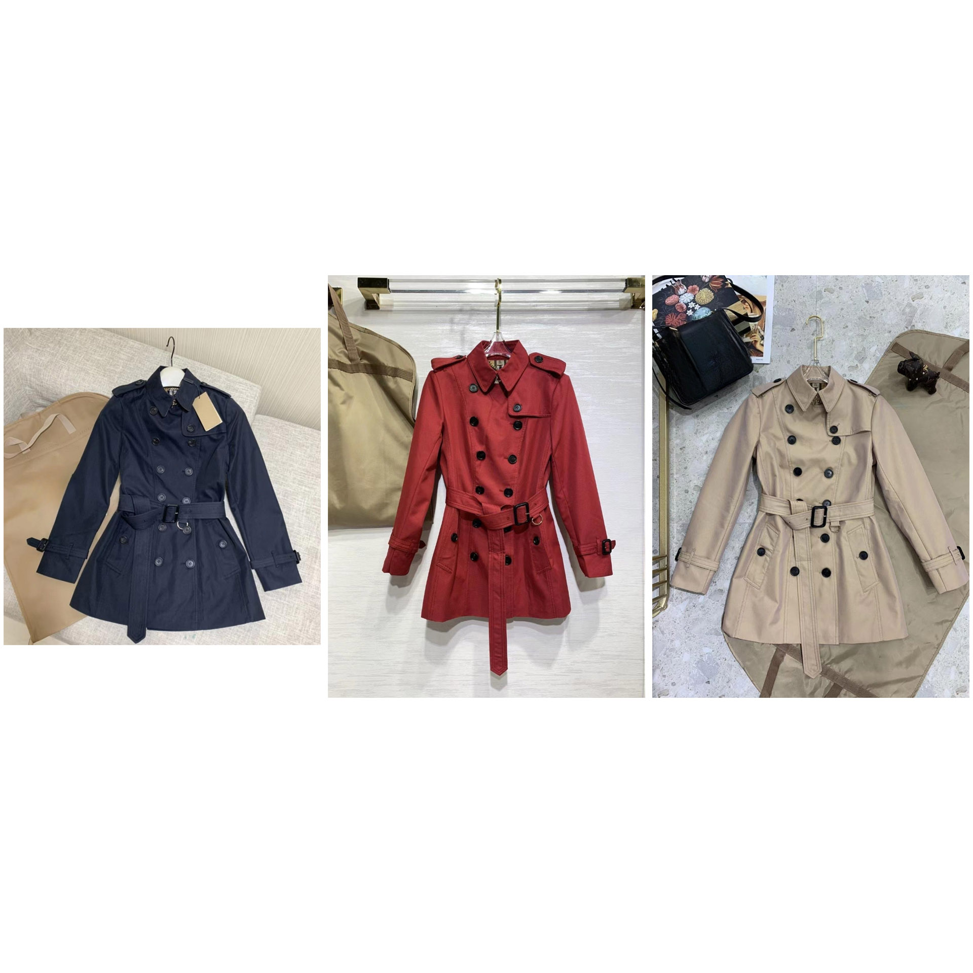 Burberry fitted double-breasted short trench coat with a cinched waist-5342