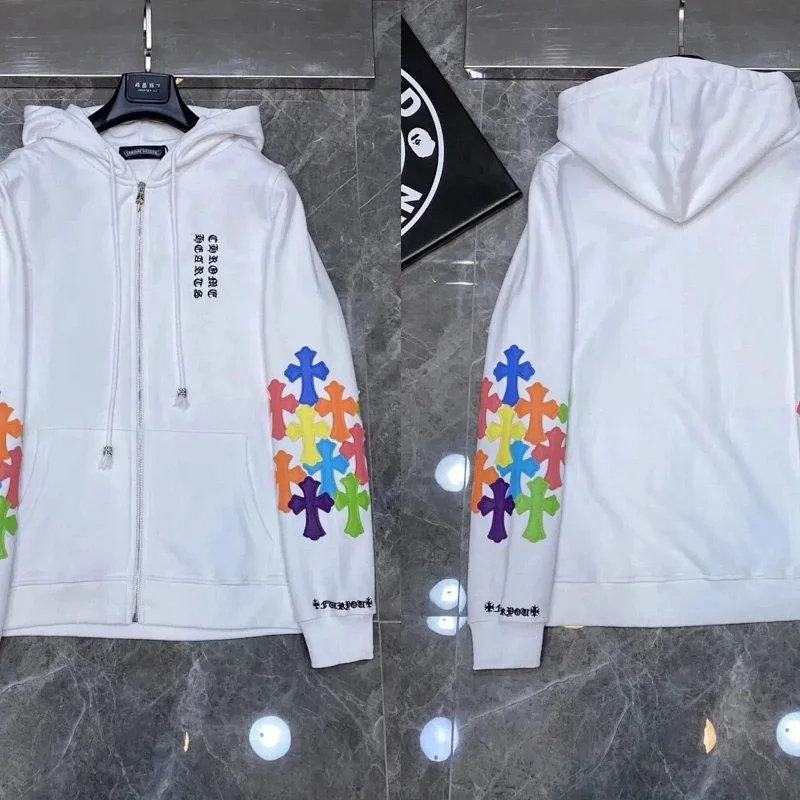 Chrome Hearts CH 2025 Colorful Cross Leather Sanskrit Hooded Sweatshirt for Casual and Versatile-2516