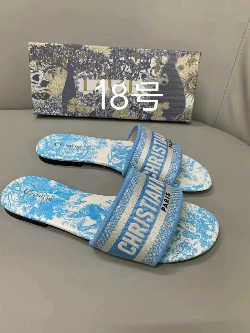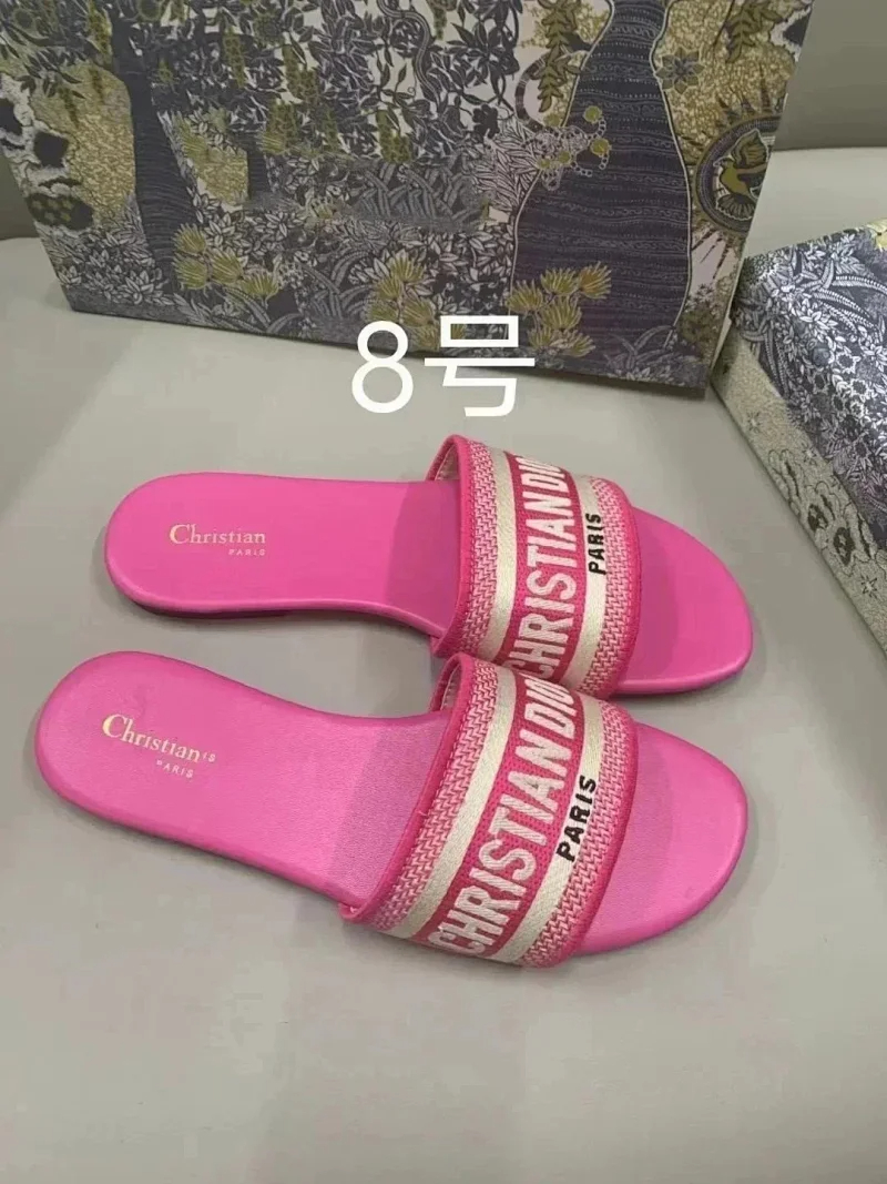 Dior 2025 new summer genuine leather letter embroidered outerwear women's slippers-2336