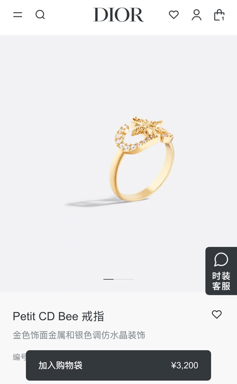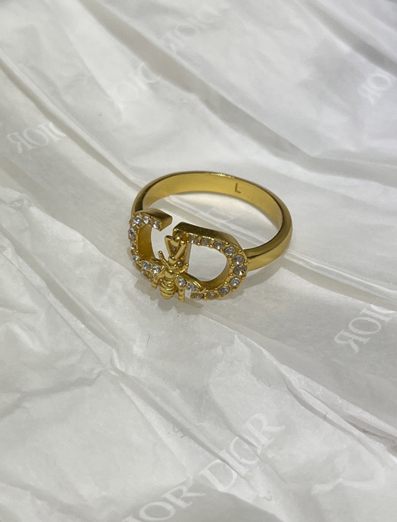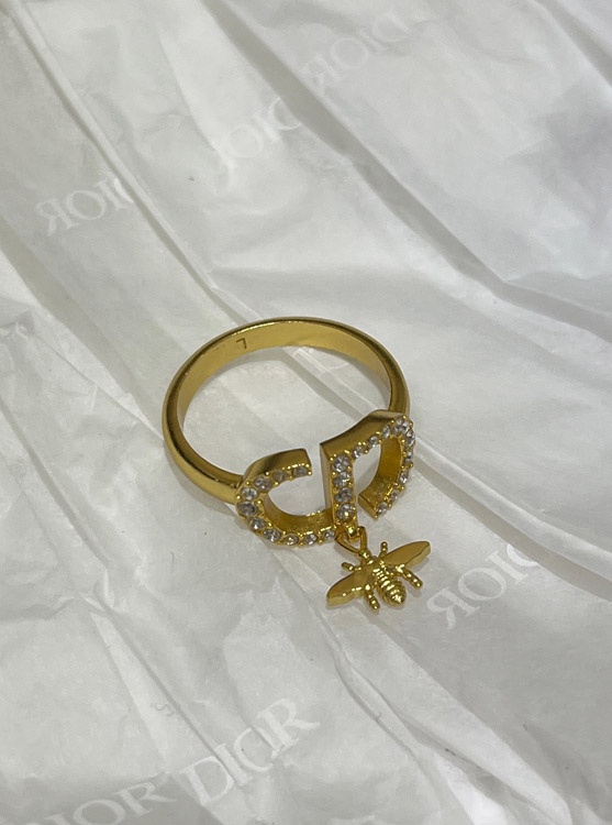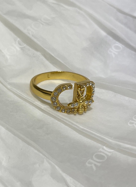 Dior gold full diamond bee pendant ring-3705