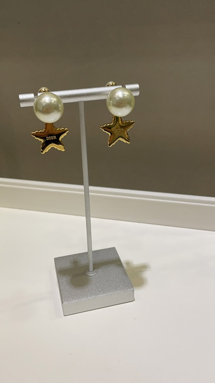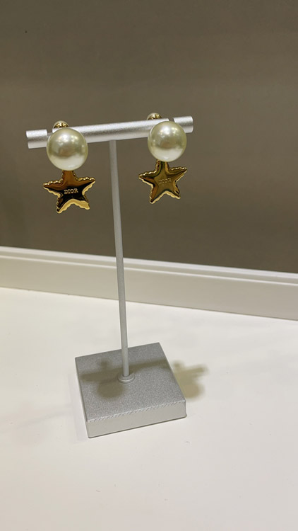 Dior navy blue star pearl double ball earrings-3891