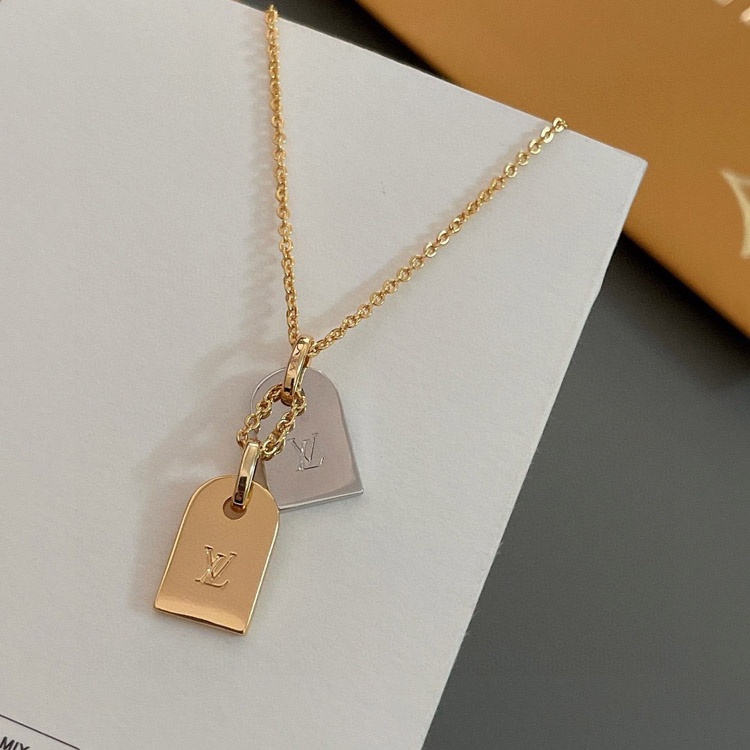 Home > Louis Vuitton LV engraved letter flower gold and silver double shield necklace-3662